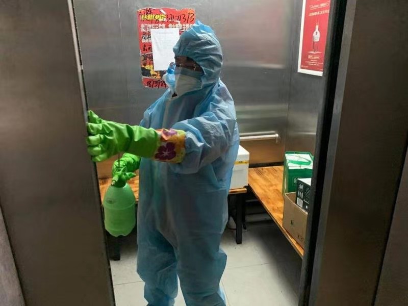 近期,物业工作群中出现过这样一张照片,一位穿戴着防护服,口罩把面部遮挡了一大半,手上戴着橡胶手套,仔细看也认不出是谁。经询问,原来是必赢官网北林校区物业部主任梁婷老师。她的这身装扮,是梁老师在必赢官网新型冠状病毒感染的肺炎疫情防控工作中的一张写真照。自从教师生活区不断出现外来人员居家隔离的情况,被隔离者不能走出家门,但生活必需品的采购却成了一个问题。作为生活区物业工作人员,需要去给隔离家庭送生活用品及蔬菜等,梁老师看到其他人面露难色,便爽快地说:“我来送”。于是她穿上防护服、戴好口罩,步伐坚定的走向了电梯。