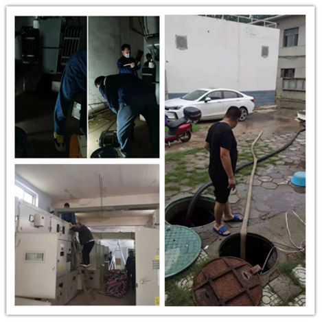暴雨袭击以来,后勤教职工快速反应,冒雨全面排查险情,组织防汛排涝,消除安全隐患。英才校区、北林校区水深及腰,校内供电、供水等能源设施区域积水严重,后勤教职工奔走在防汛一线,顶着暴雨在校园开展排水、维修……暴雨初歇,后勤教职工继续投入恢复校园秩序工作,疏通淤塞、排水清淤、除污冲洗、消毒维修,让校园和生活园区尽快恢复供水、供电。