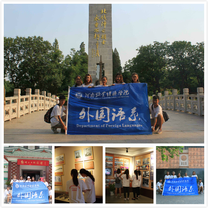 为缅怀革命先烈,感受革命文化,服务队的队员们前往碧沙岗公园和二七革命纪念塔。他们怀着一颗敬畏的心认真瞻仰,这些遗迹、文字、照片仿佛在向队员们讲述着当年先烈们为争取建立一个新的中国而奋斗的一幕幕。“一寸山河一寸血,一抔热土一抔魂。”