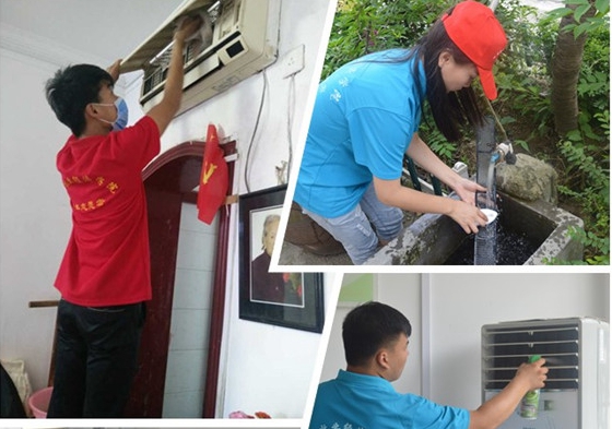 7月4日至8日,服务队分别在清茶园广场、新县田铺乡、光荣院等地开展“发挥专业优势 服务新县群众”空调等家电健康使用知识宣传普及活动,同学们带着提前制作的通俗易懂的宣传手册,向当地群众详细介绍空调常见微生物对人体的危害、空调相关疾病等,普及空调、冰箱等常用家电正确使用方法。服务队走进新县居民小区、田铺乡、光荣院等地开展了“空调深度清洁,倡导健康节能”义务清洗空调活动,运用所学知识对常用家电的进行力所能及的维修、清洗和维护,据统计,此次活动共开展专题讲解3次、宣传页发放2000余份,空调清洗60余台。队员们热情详尽的宣传讲解和清洁服务赢得了当地群众的一致好评。