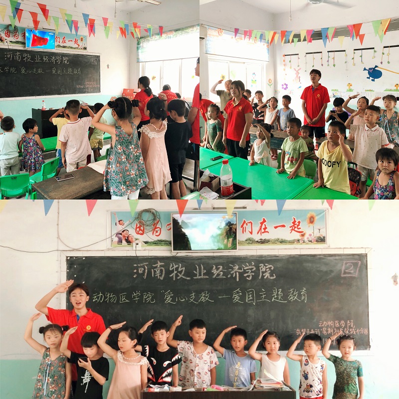 7月14日,暑假社会实践小分队于贺营小学内开展“我上一堂爱国课”的爱国主题教育活动。暑期社会实践小分队成员刘世浩同学担任此次课程的支教小老师。