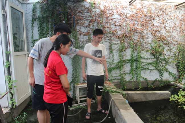 7月19日,队员们来到了位于郑州市中牟百亩鱼塘,学习水产知识,体验农家生活。本次实践活动邀请了水产教研室主任徐文彦老师位同学们进行指导培训。队员们在徐老师的指导下学习了鮰鱼的养殖管理,并到菜园帮忙锄草、采摘农作物,体验了农田生活,体会了劳动的欢乐与艰辛。