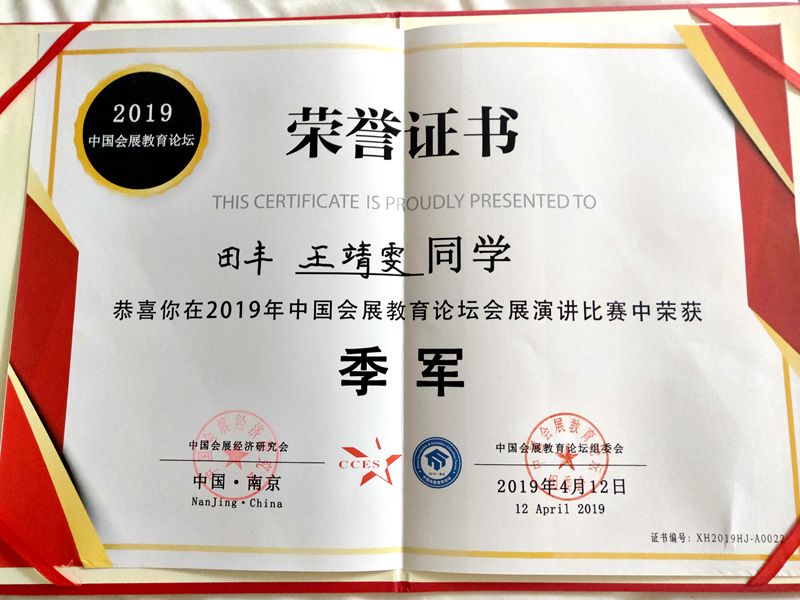 4月11至13日,“讯狐杯”全国会展院校大学生创意策划挑战赛,“讯狐杯”第五届全国会展院校“会展未来之星”演讲大赛在南京举行。本次活动由中国会展经济研究会主办,讯狐国际科技(北京)有限公司承办,国内多家省级会展行业协会协办,吸引了四川大学、湖南师范大学、南昌大学、成都理工大学等国内40多所知名高校参加。必赢官网旅游学院田丰、王静雯两位同学在该赛事演讲赛中荣获季军,张云秀、郭玉芳两位同学在创意策划挑战赛中获二等奖,副院长赵忠奇、沙强博士同获优秀指导教师。