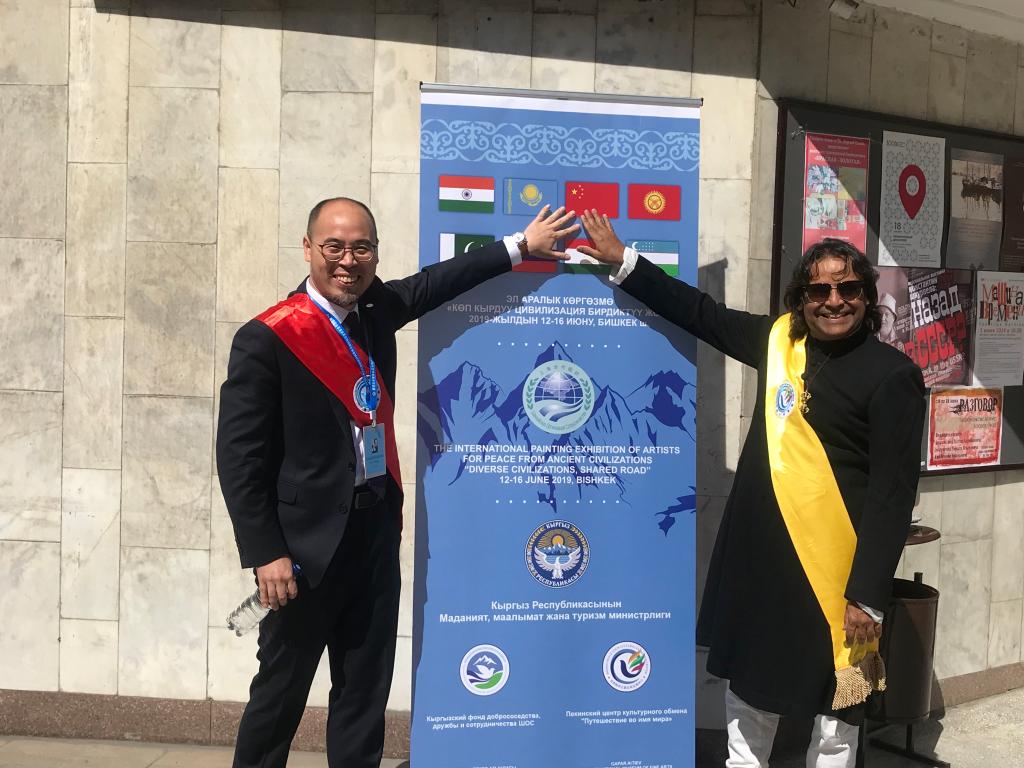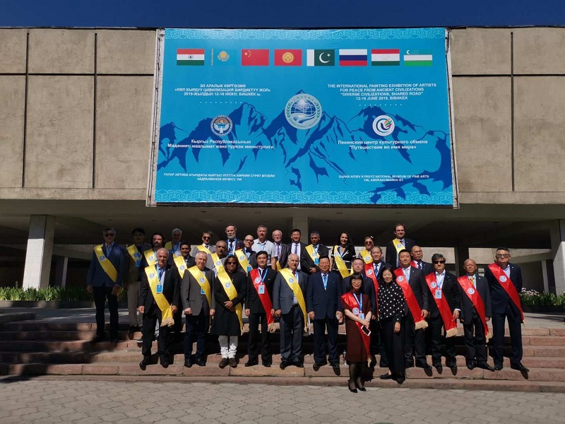 6月11日至16日,必赢官网艺术学院教师魏意苹受邀参加在吉尔吉斯斯坦首都比什凯克举办的“多彩的文明,共同的道路——2019上海合作组织比什凯克峰会国际和平艺术家美术作品展”。