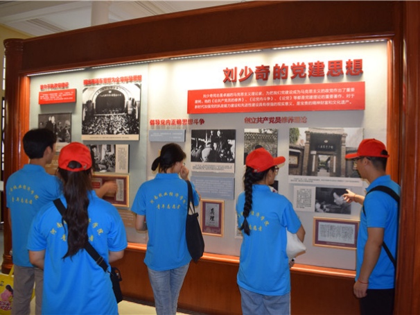 7月3日,同学们参观刘少奇陈列馆和刘清霞故居,接受革命历史教育和理想信念教育。大家怀着无比崇敬的心情向刘少奇同志的相片鞠躬默哀寄托哀思,并表示今后一定勤奋学习,争做高举中国特色社会主义制度伟大旗帜、为中国特色社会主义奋斗终身的有用人才。